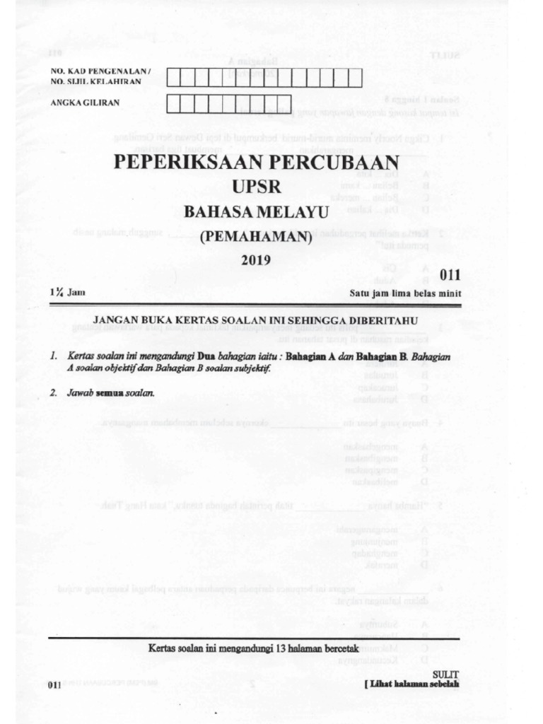 Mengulangkaji pelajaran dengan sistematik adalah kunci kejayaan pelajar dalam peperiksaan (exam). Soalan peperiksaan percubaan (trial papers) upsr 2018, 2019. Kertas peperiksaan ini mengandungi 5 halaman becetak 0 halaman tidak bercetak. Koleksi soalan percubaan upsr 2019 2020 + skema jawapan (semua subjek). Posts about peperiksaan percubaan spm written by admin. Biasanya upsr dijalankan selama 5 hari. Bank soalan percubaan bagi tahun 2019 untuk semua negeri. Dapatkan soalan percubaan upsr 2019 bahasa inggeris negeri. Pihak sekolah akan maklumkan masa dan tarikhnya kepada para murid sekolah nanti. Berikut merupakan koleksi soalan percubaan upsr 2019 pulau pinang. 17.02.2021 · koleksi soalan percubaan upsr 2019 semua negeri dan jawapan. Koleksi soalan peperiksaan, soalan percubaan, soalan kbat, nota, modul soalan, latihan … Meganathan a/l lachimanan guru mata pelajaran bahasa melayu tingkatan 5 1.
