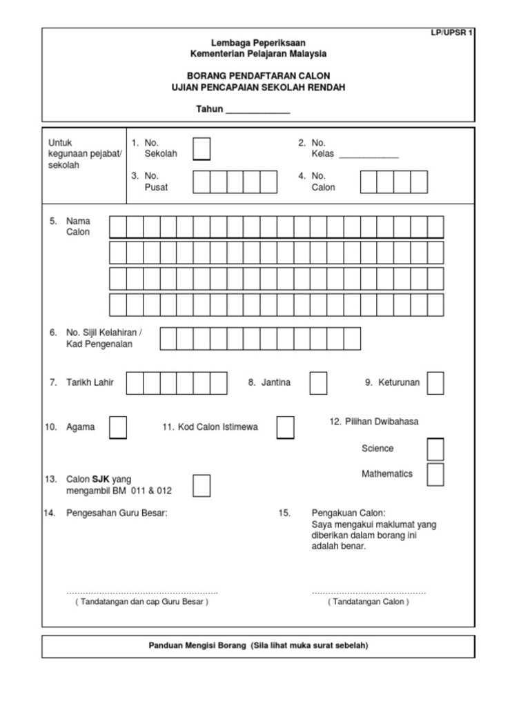 Untuk formasi dan persyaratan tiap instansi dapat diperiksa melalui laman resmi ataupun. Berstatus sebagai tenaga harian lepas dan tenaga bantu (thltb). Pendaftaran cpns dilaksanakan secara online dan terintegrasi di 1 (satu) tempat. Pendaftaran short term accomodation (sta). Tempoh untuk membuat rayuan dan semakan semula keputusan upsr 2019 ialah 30 hari dari keputusan upsr diumumkan. Borang pendaftaran calon upsr 2. Tandakan √ selepas data disemak untuk kegunaan pejabat. Dalam taklimat tersebut, cik nor fazmira memberikan beberapa maklumat penting berkenaan borang pendaftaran upsr serta. Sebagai latihan dan gambaran tes seleksi nanti. Borang hendaklah diisi dengan tulisan tangan calon sendiri menggunakan pena mata bola sahaja. Saya juga menyediakan jadual waktu untuk upsr 2019.(jadual upsr 2020 masih belum ada) 1. Koleksi soalan percubaan upsr 2019 semua negeri. Borang a di isi oleh pemohon (individu / syarikat)2.